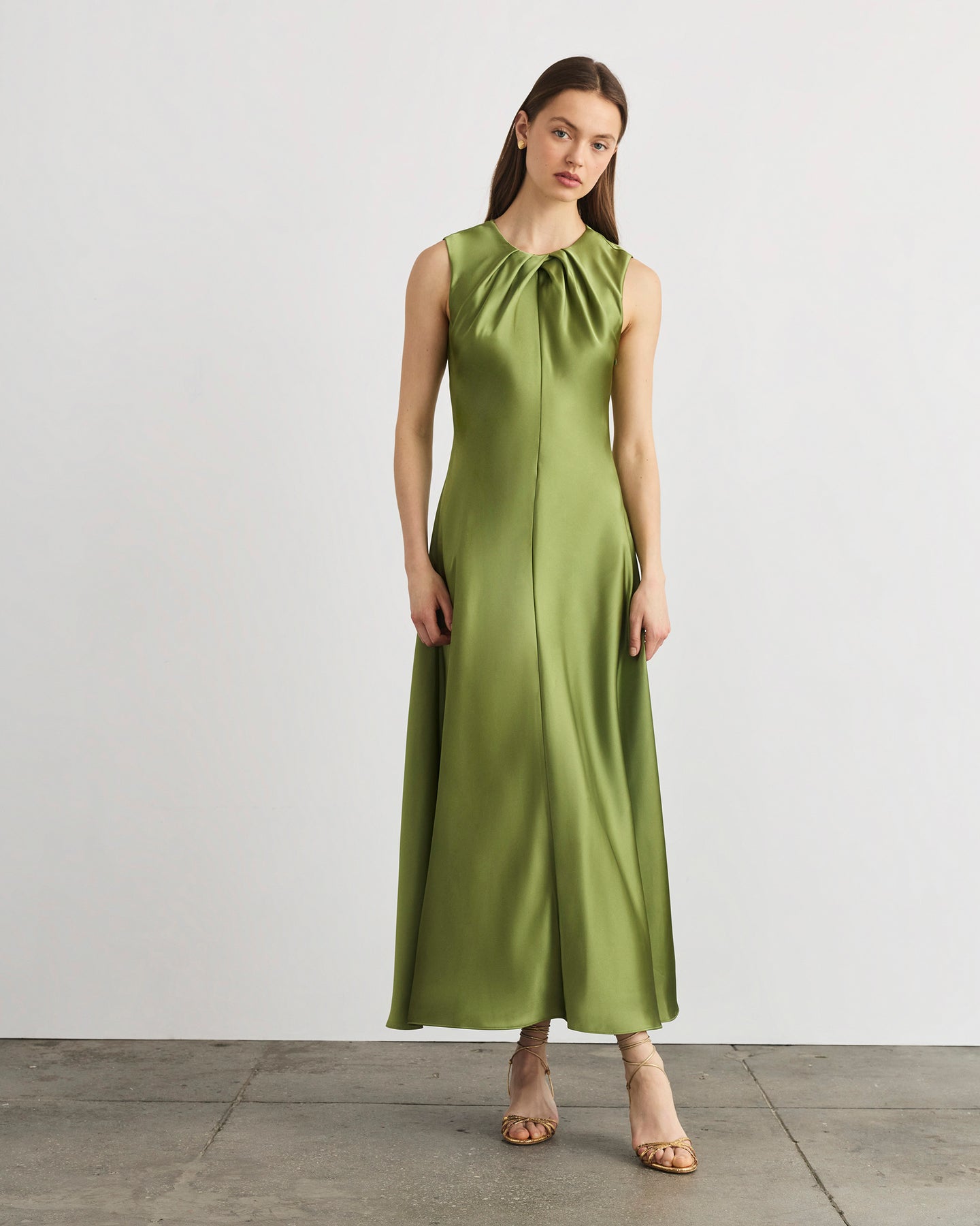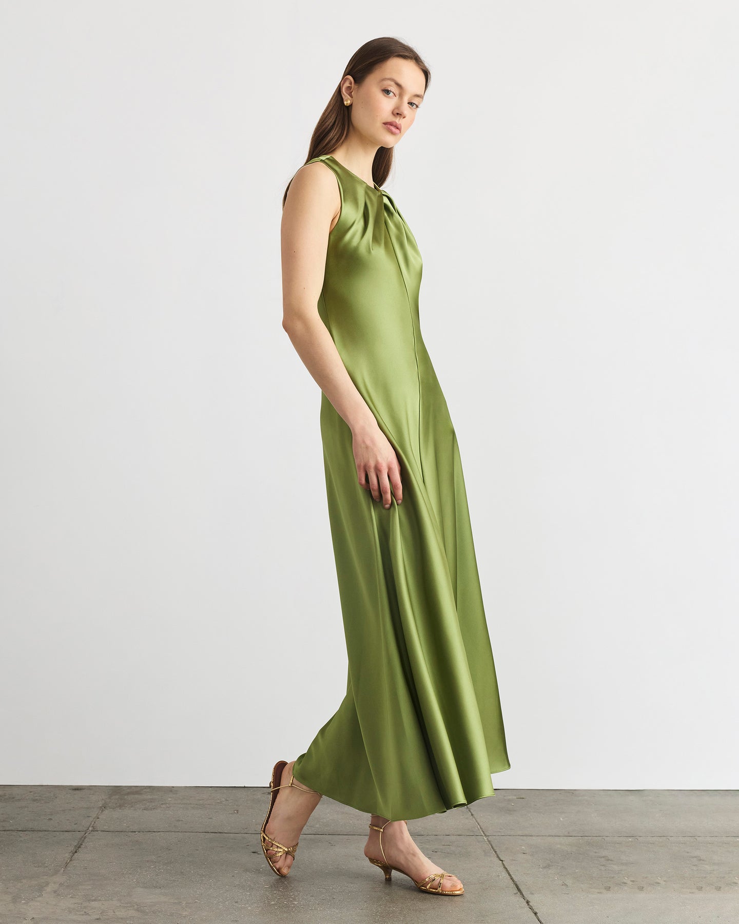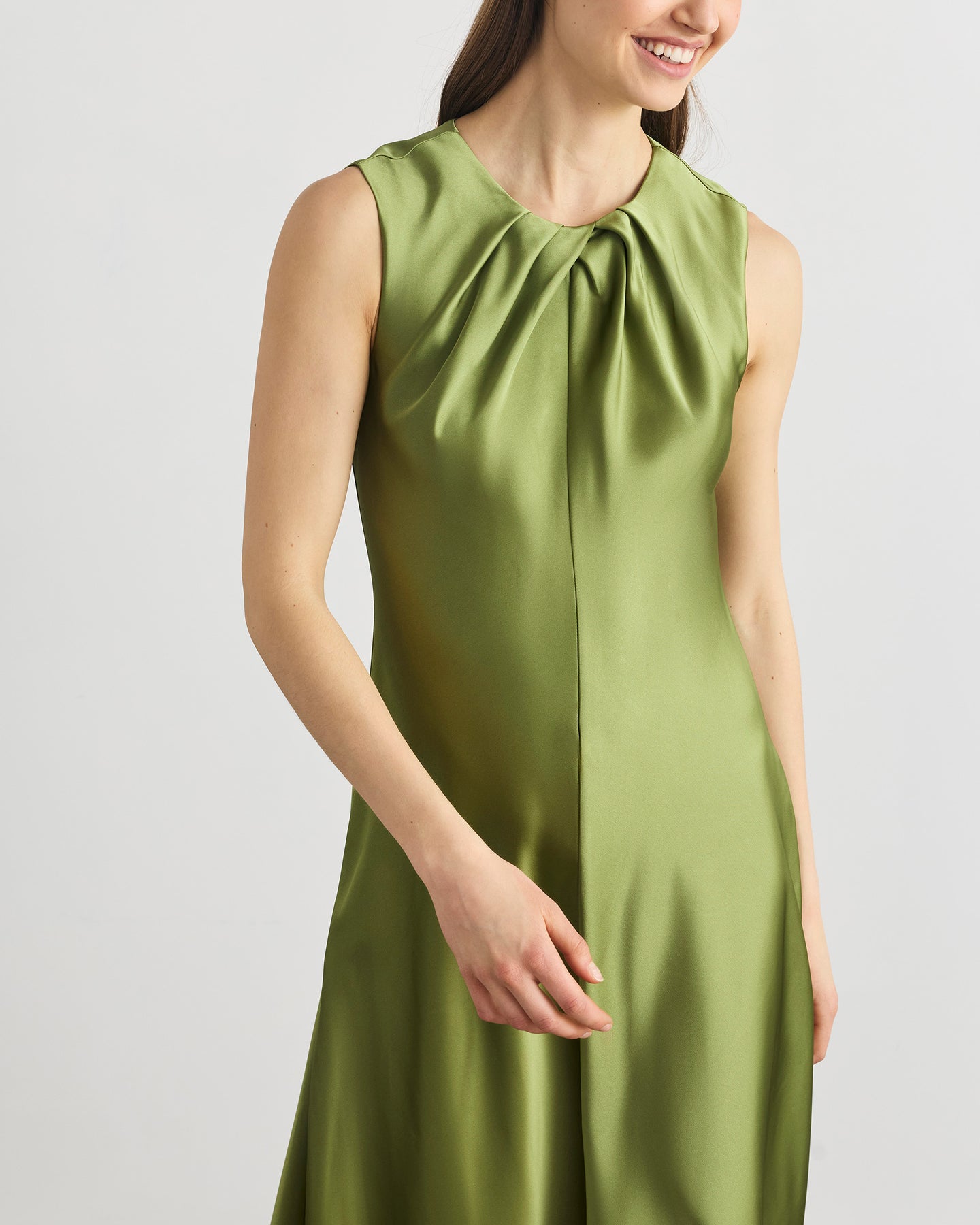 Featuring a crew neckline with intricately placed knife pleating and a bias cut silhouette, Emily is effortlessly elegant with the perfect proportions in mind.