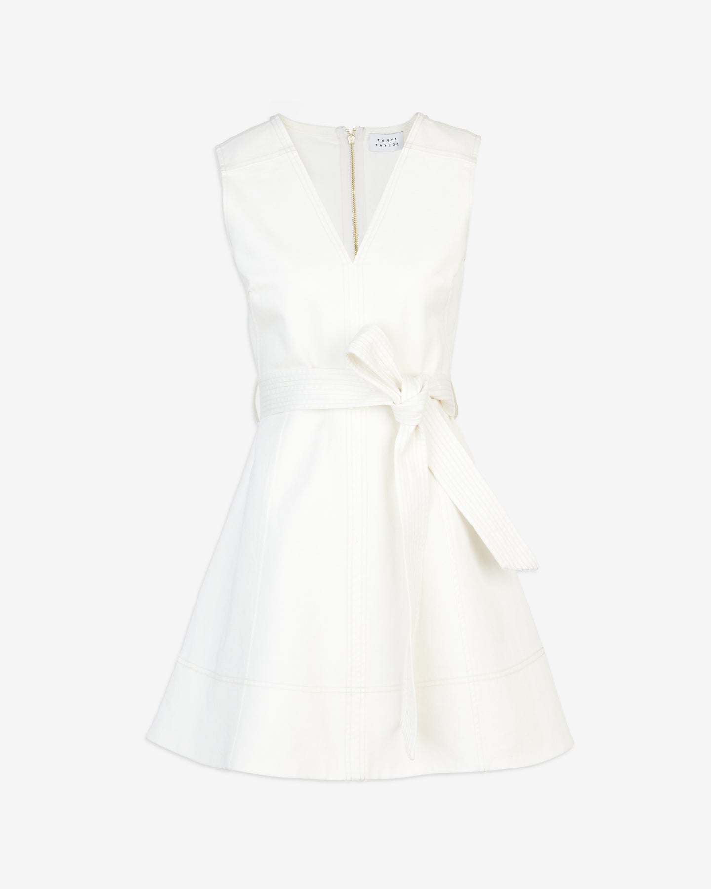 Featuring a versatile V-neck and a feminine A-line skirt with a self-tie belt, this effortless dress will be your new go-to for everyday ease and a timeless addition to any capsule closet.