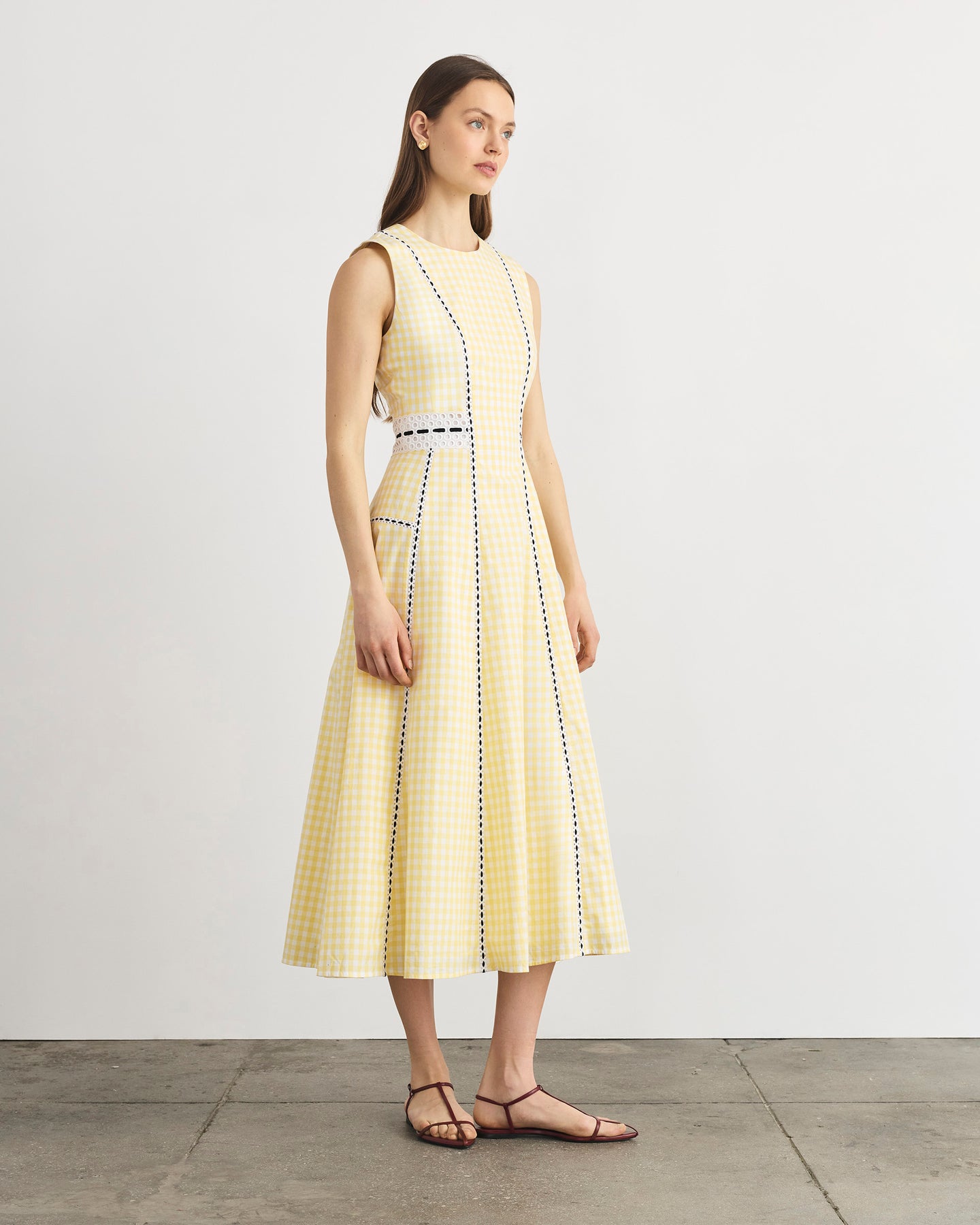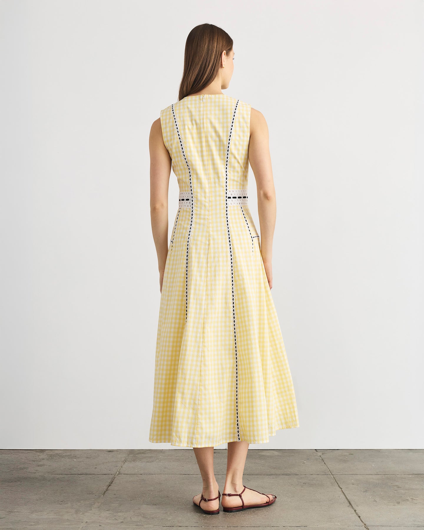 Featuring a crew neck and a flared silhouette carefully outlined by eyelet lace trim, the Sloane Dress is a perfectly versatile silhouette for everyday wear or your upcoming soirées.