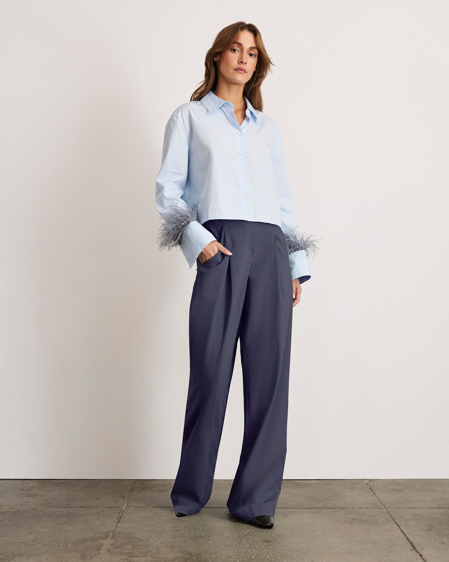 Designed in a crisp cotton shirting, the Largaux Feather Top is our take on a classic button-up shirt with a feathery twist.