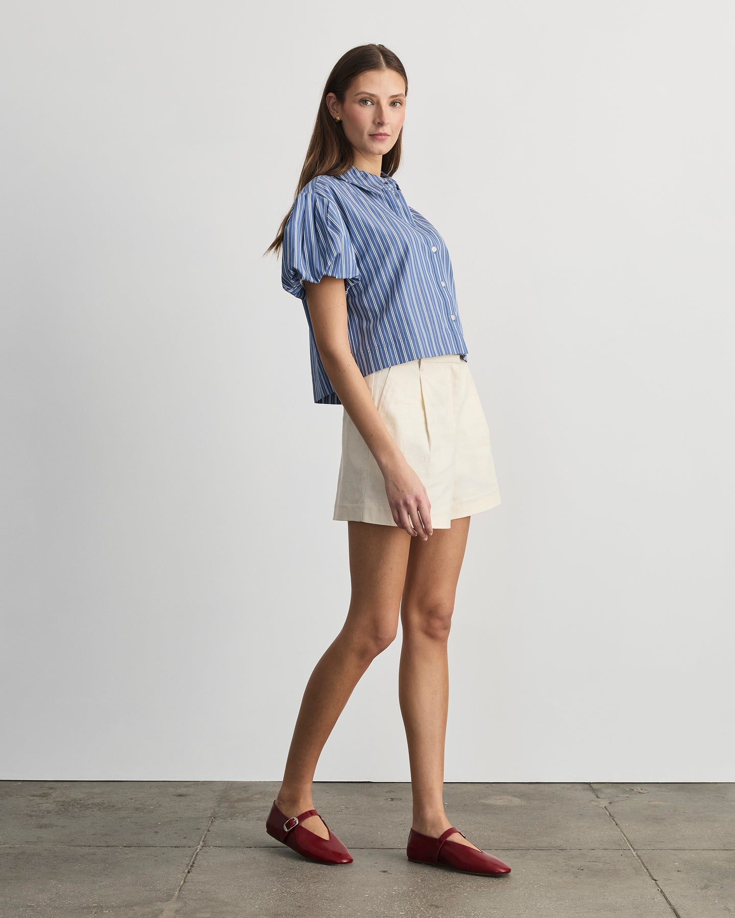 Featuring short puff sleeves offset by the straight cut of the shirt, Elza has a feminine look and feel, with the perfect proportions in mind.