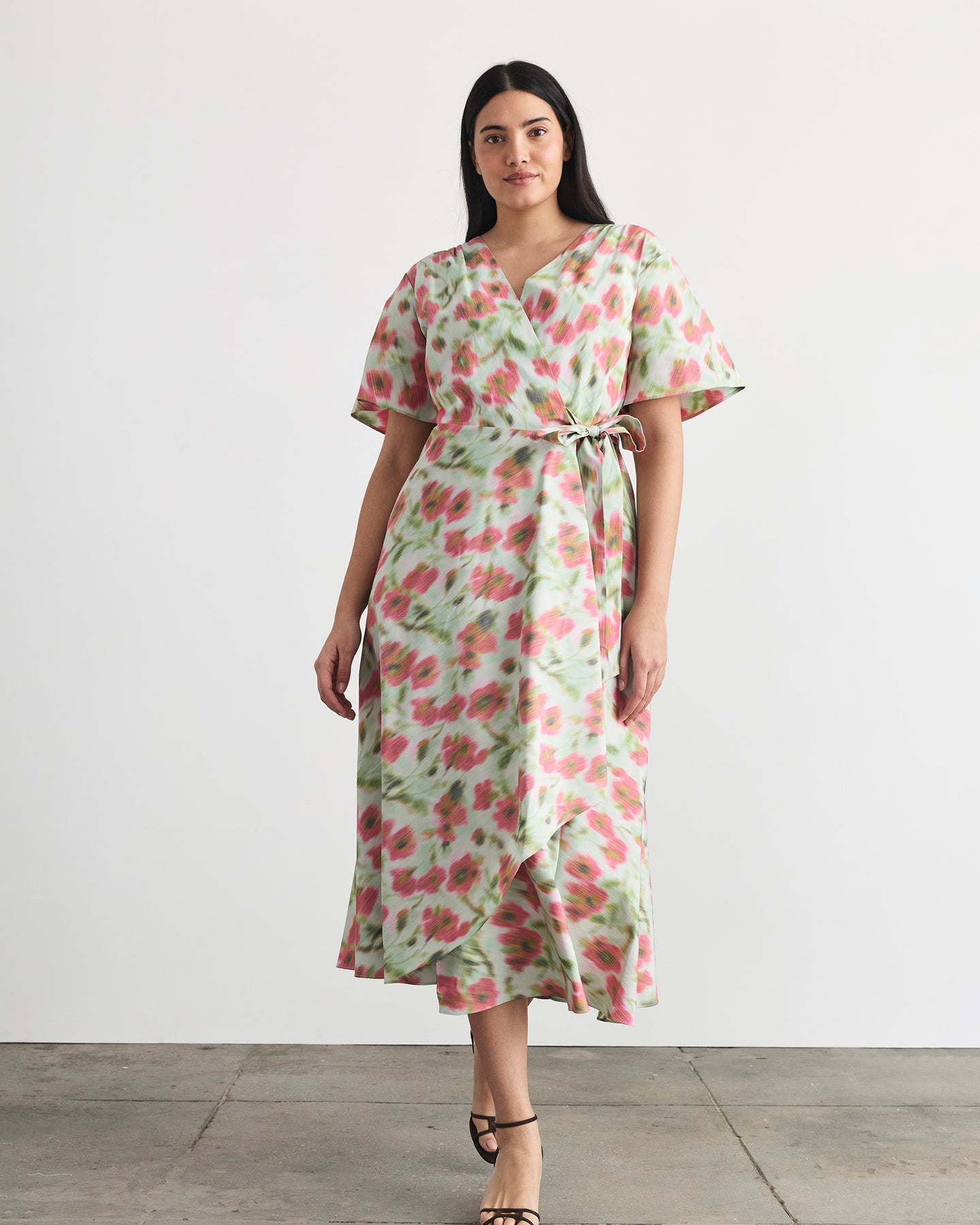 Featuring a bias-cut skirt that flows effortlessly, flutter sleeves, and a self-tie belt, the Klaire Dress is an elevated wrap dress ready for any garden party.