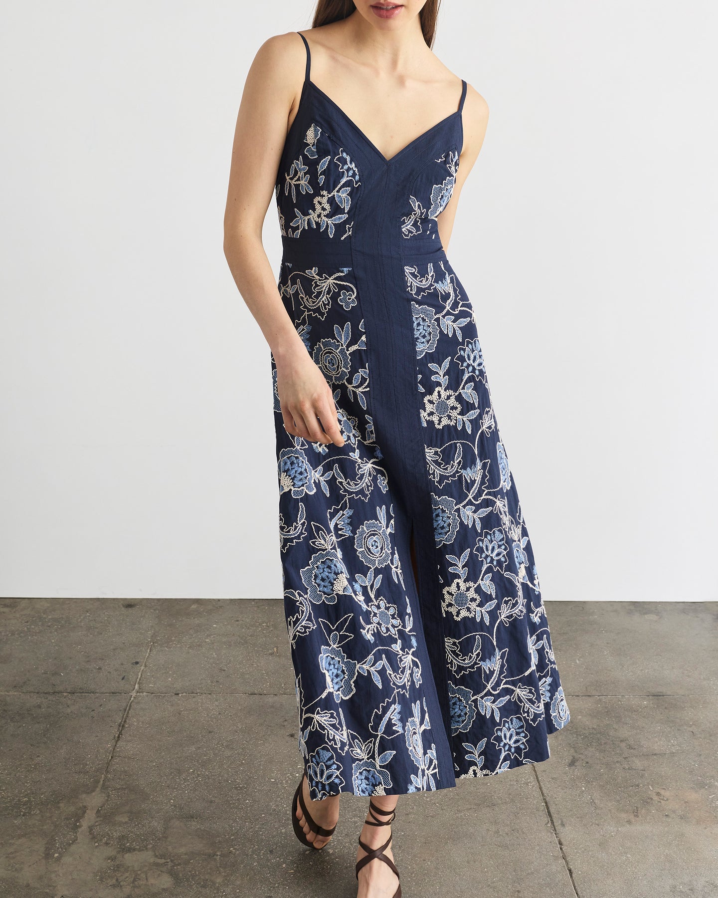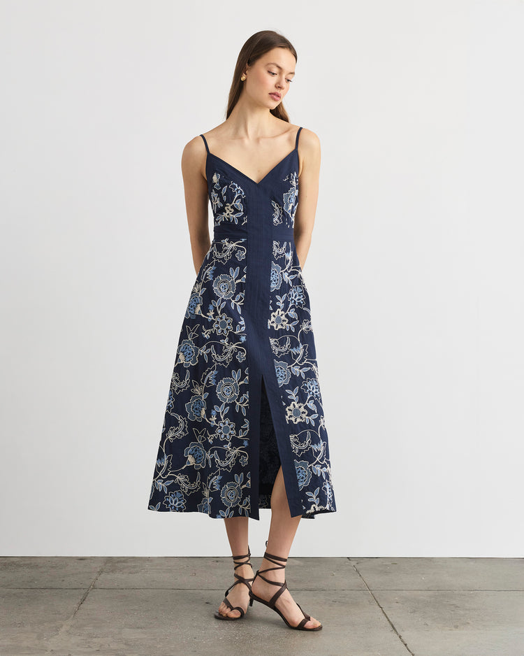 Designed in a luxe cotton poplin with floral embroidery throughout, the Madden Dress is our answer to day-to-night dressing this spring.