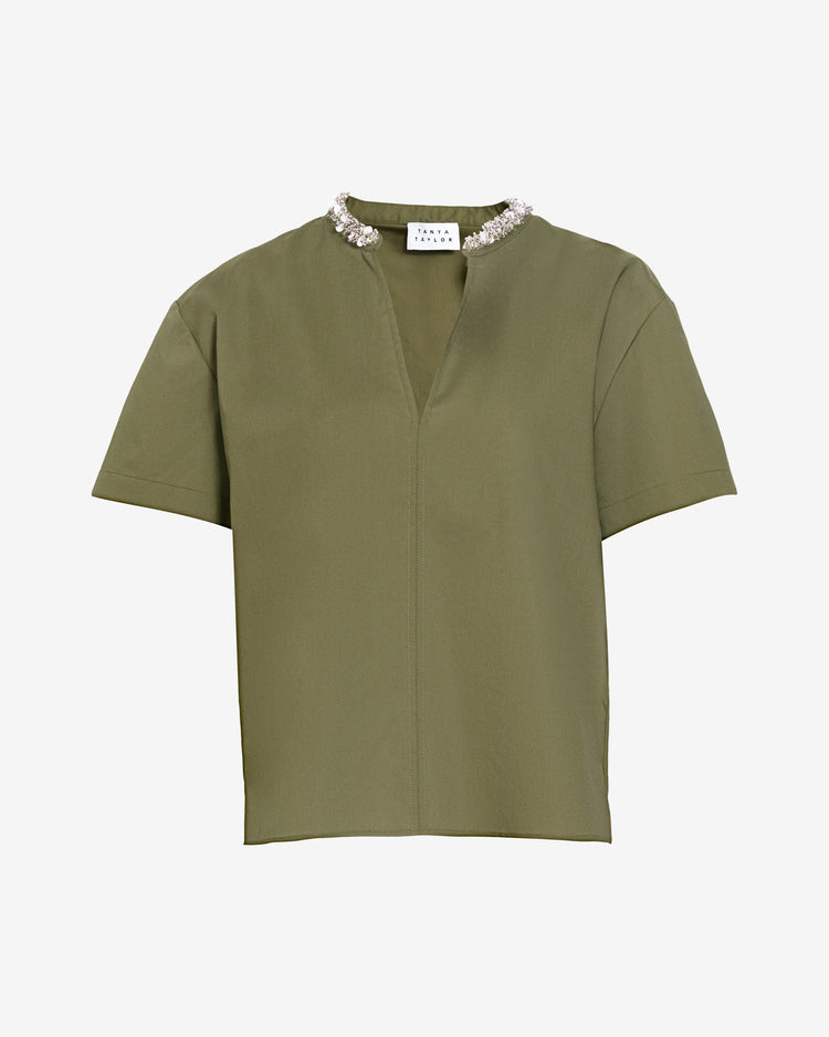 Featuring a beaded collar, straight fit, and short sleeves, the Aubrey Top is the perfect breezy top for mixing and matching this Spring season.