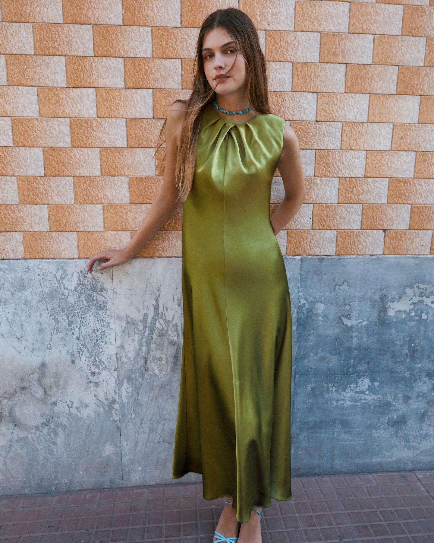 Featuring a crew neckline with intricately placed knife pleating and a bias cut silhouette, Emily is effortlessly elegant with the perfect proportions in mind.