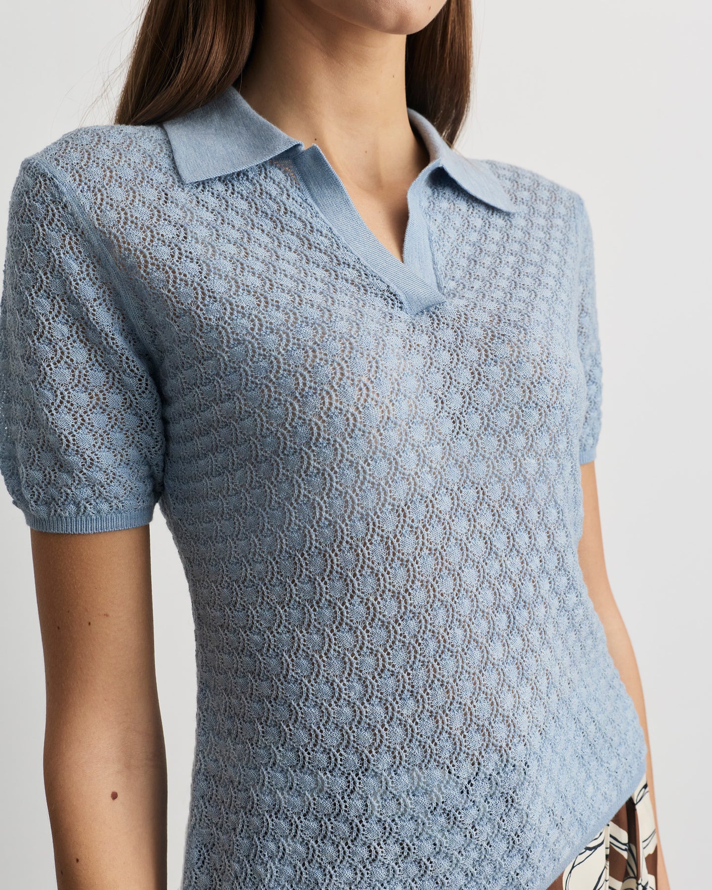 Back by popular demand, the classic polo knit gets a romantic update in our best-selling Camilla Pointelle Knit Top.
