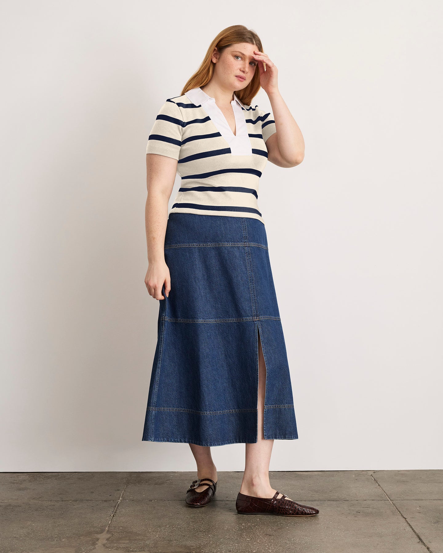This season, style the Melanie Top back to our denim Hudley Skirt for a fresh daytime look.