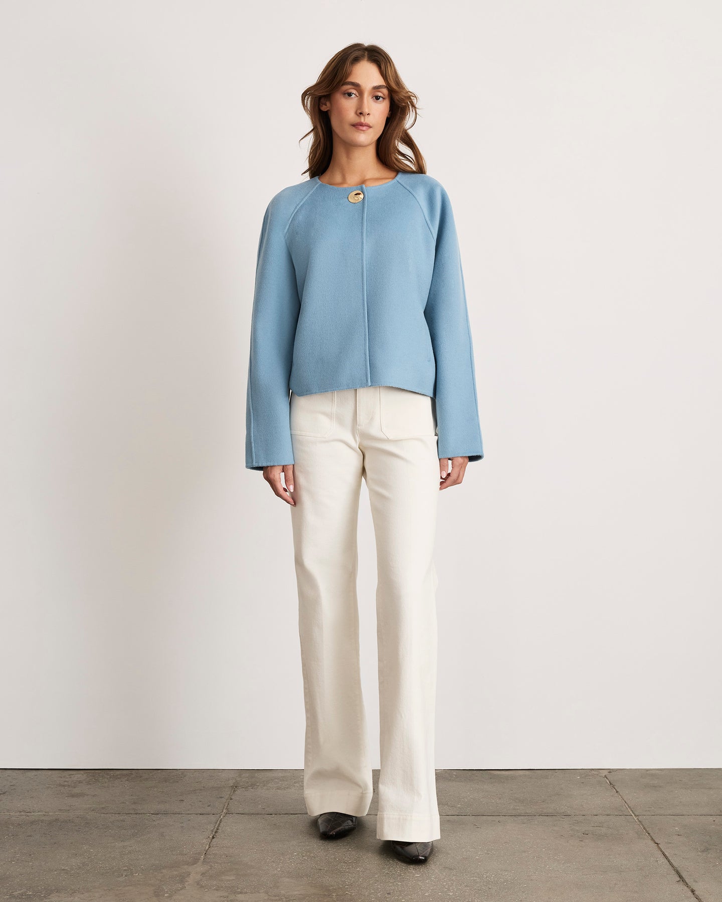 Featuring thoughtful details throughout, from the custom gold button and feminine crew neck to the angled side pockets, Micah lends a sophisticated yet approachable ease to everyday dressing.