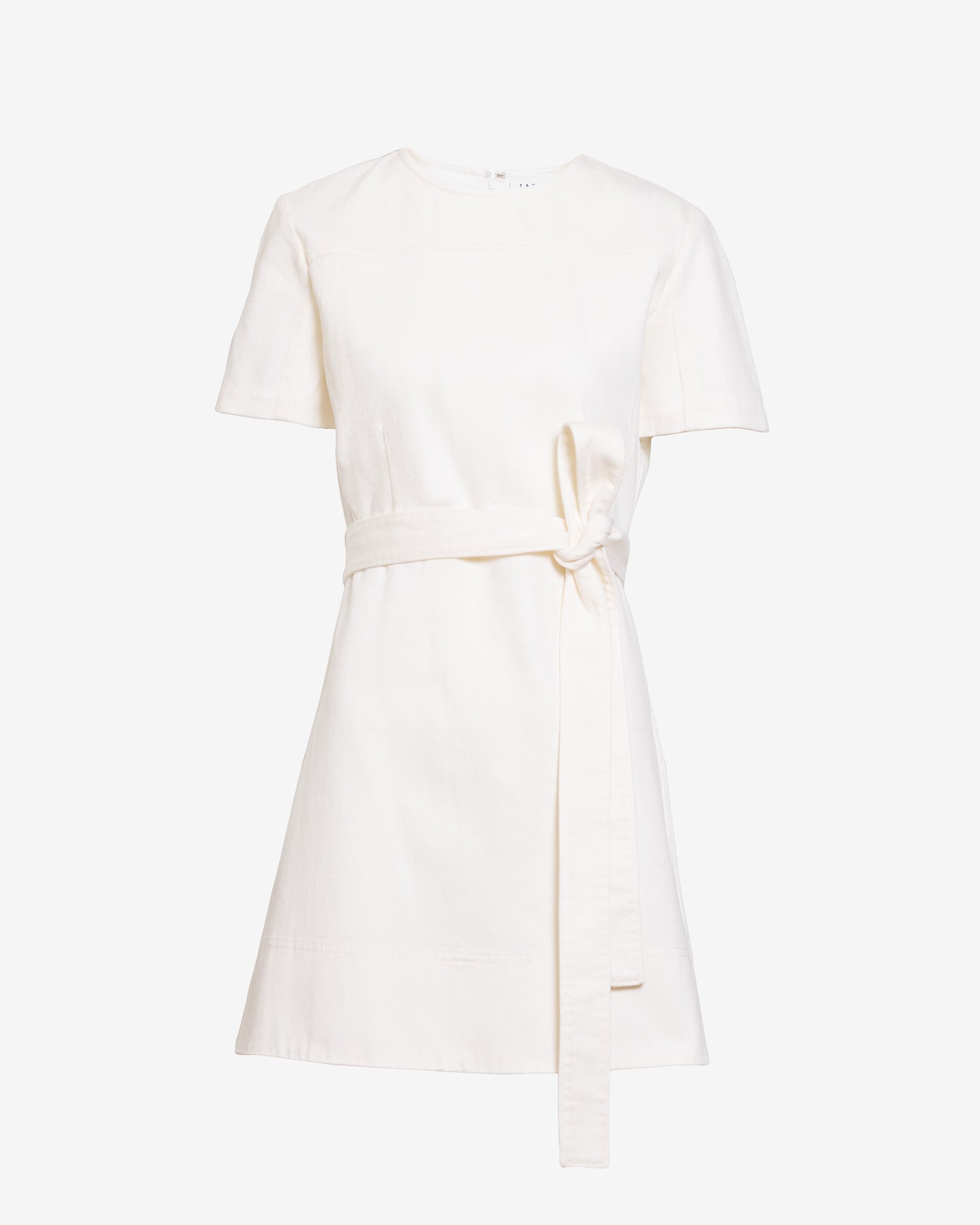 A signature silhouette and best-seller, the Ella Dress returns this season in a soft chalk denim as a versatile mini.